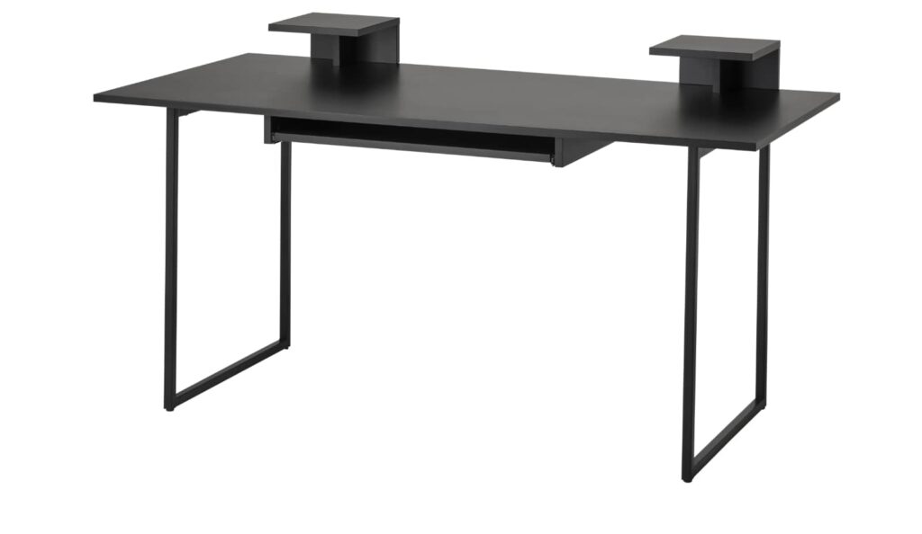 The black desk includes two speaker stands built into the design, plus a pull-out shelf below the desk potentially for a MIDI keyboard, while the associated armchair relies on adjustable straps to tune the comfort level, though we’re not entirely sure it’s made to go with the desk.