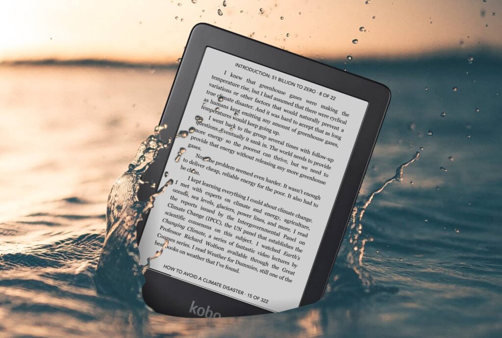 The latest model is the Kobo Clara 2E, a 6 inch touchscreen eReader with 16GB storage and weeks of battery life using a casing made from 85 percent recycled plastic, which itself includes 10 percent ocean bound plastic, such as compact discs and water bottles.