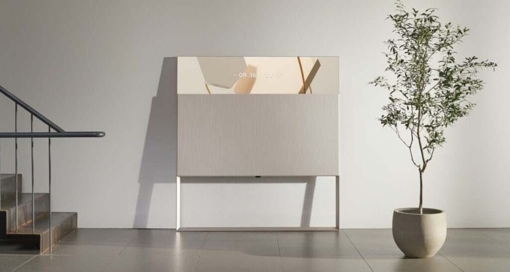 Priced at $17,999, it’s covered in Kvadrat, a fabric textile that looks a little more luxurious than the plastic or glass you might expect a TV to come equipped in, with that Kvadrat section able to be raised and lowered to turn it into a media system or TV.