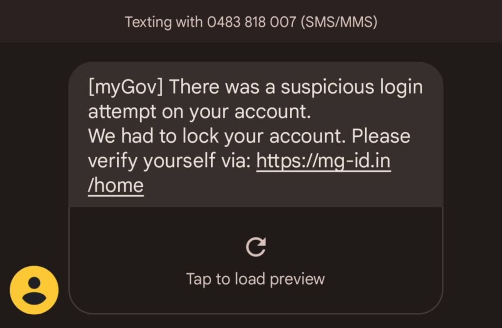 The point is this: if you see an SMS saying it’s from myGov advising that your account has been locked, check the send ID at the top and look at the link. If neither say “myGov” in the right way, you might be looking down the barrel of a scam, and it’s in your best interest to not click.