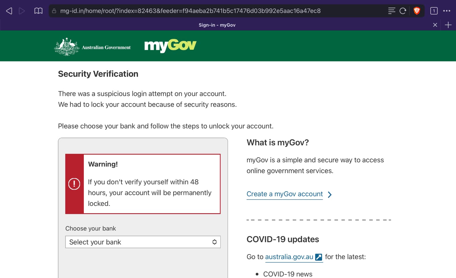 [myGov] There was a suspicious login attempt on your account. We had to lock your account. Please verify yourself via the LINK
