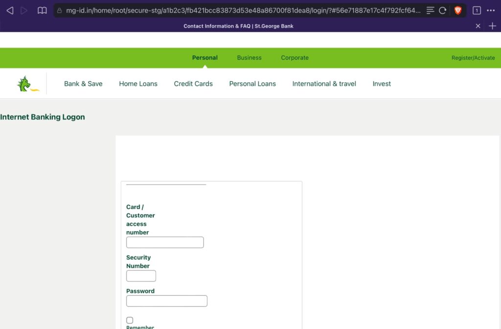 Regardless of which bank you select, you’ll be taken to a site inside this phishing site, the fake myGov website, with phishing clones of Westpac, Commonwealth, ANZ, NAB, St George, and Bank of Queensland showing up on screen, waiting for you to type in your bank login details (examples below).