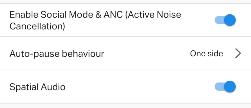 A feature on the app allows you to turn on Spatial Audio for the earphones, giving them a more studio sound and working in any app. We tested in YouTube Music, and there’s definitely a different sound with a touch more spatial awareness, emulated as it is, and something you can switch on and off.