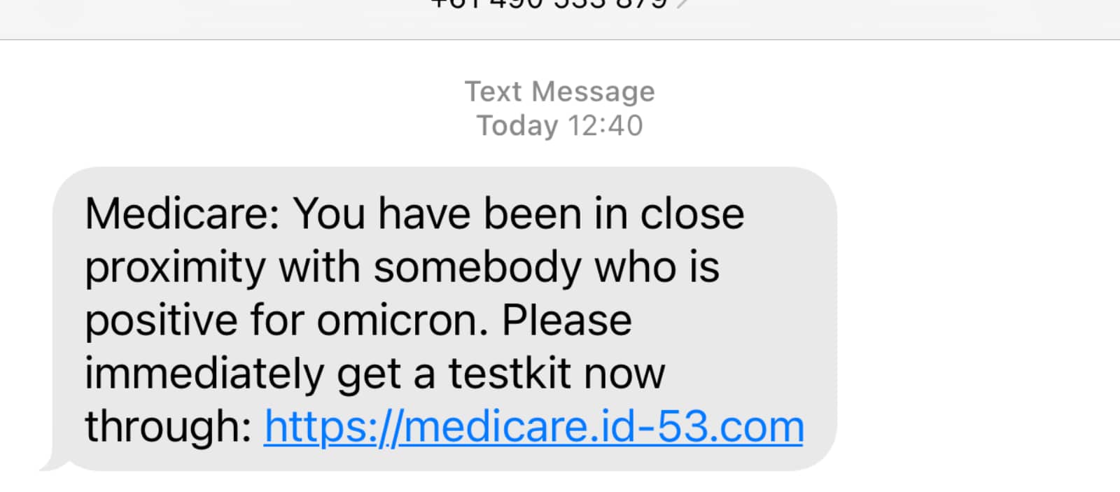 If you receive a message purporting to be from “Medicare” about being near someone who has tested positive from Omicron, you might want to take it with a grain of salt.