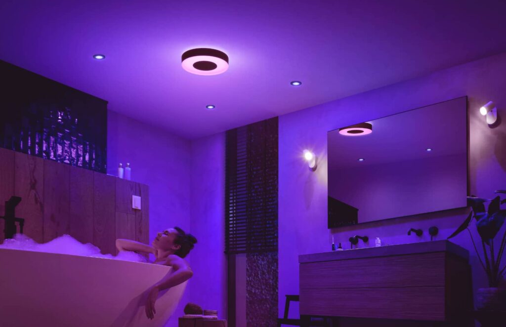 There’s also a bathroom light on yhe way in the Hue Xamento, a light kind of resembling a bit of a donut with a black edition that can be dimmed low in lots of colours.