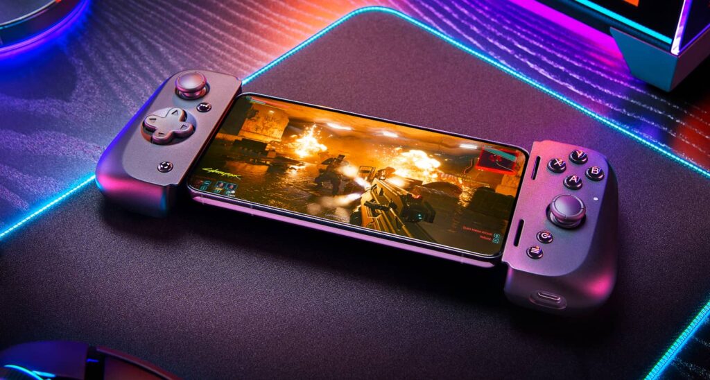 Accessory makers can get you doing this with a clip and a BYO console controller from something like an Xbox, handy if you’re planning to tap into the power of Xbox Cloud Gaming, but there are other options, with controllers that wrap around phones.