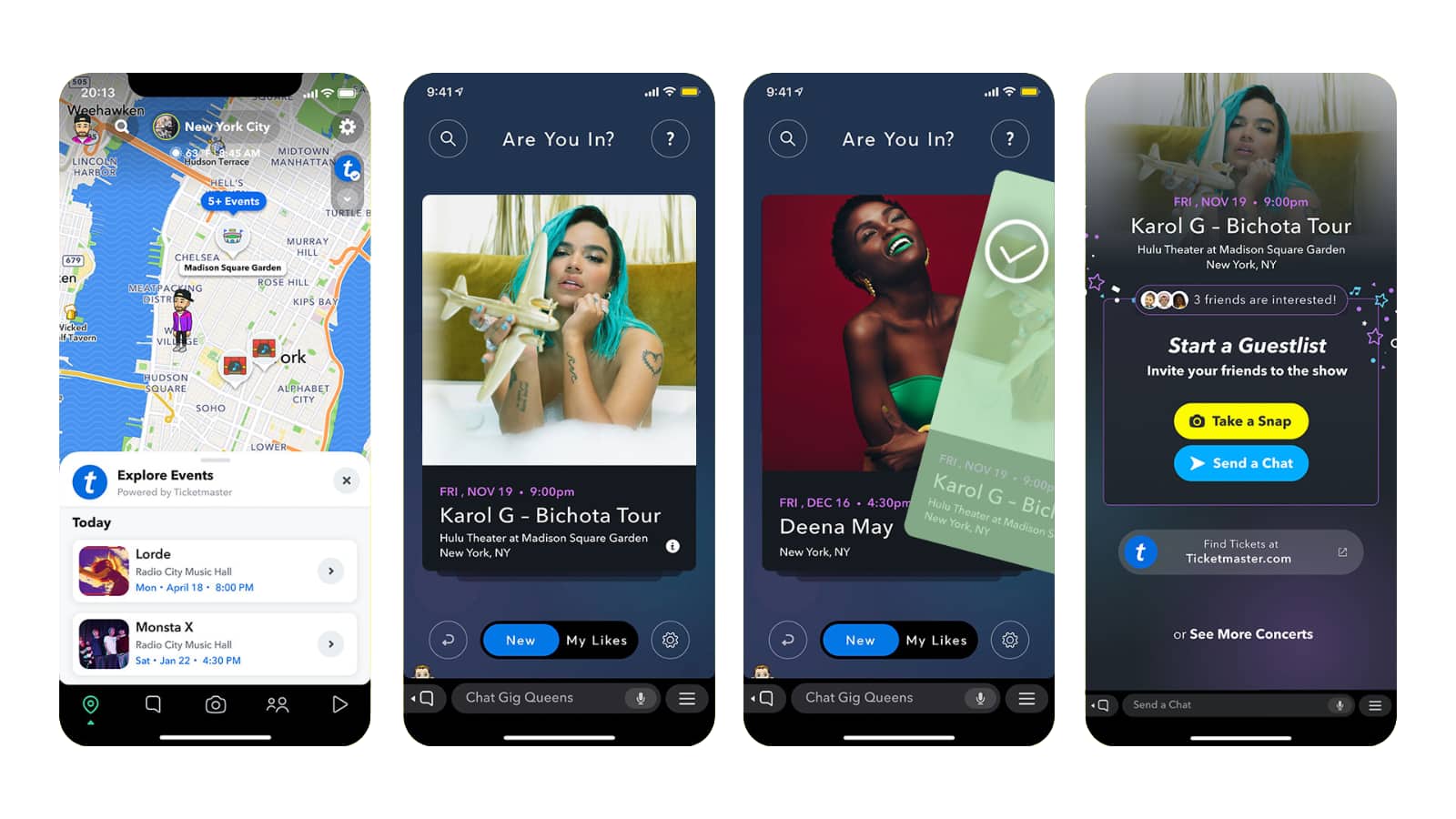 Snapchat has a different approach on the way, though, as it teams up with one of the world’s largest event companies, Ticketmaster, to come up with an approach that feels like it was inspired by dating apps.