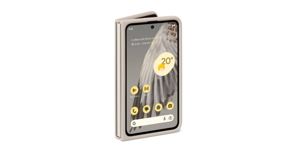 There’s a Google Tensor G2 chip like from the Pixel 7 Pro, 12GB RAM, and either 256GB or 512GB storage, with the cameras on the back similar to the Pixel 7 Pro, covering a 48 megapixel wide standard, 10 megapixel ultra-wide, and 10 megapixel 5x optical zoom, while the inside offers an 8 megapixel front-camera. But because this is a foldable phone, you could also use the 5.8 inch front screen and the rear camera to take selfies, much like how you can on any foldable phone.