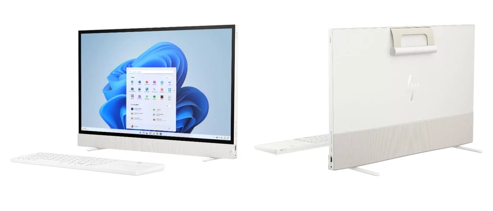 In short, it’s an all-in-one desktop you can move around, arriving with a 23.8 inch screen, a built-in battery, a handle, and a kickstand to hold the screen up. HP is also including a little pouch at the back of the display to store the wireless keyboard and mouse, while the screen supports touch just in case you don’t want to use a mouse.