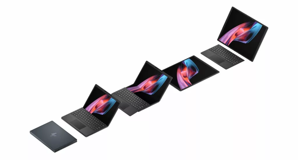 The idea is curious, going from laptop to tablet and even 17 inch desktop in seconds, before folding up into the 12.5 inch laptop when closed shut, all with a 12th-gen Intel Core i7 chip, 16GB RAM, 1TB storage, and two Type C USB Thunderbolt 4 ports.