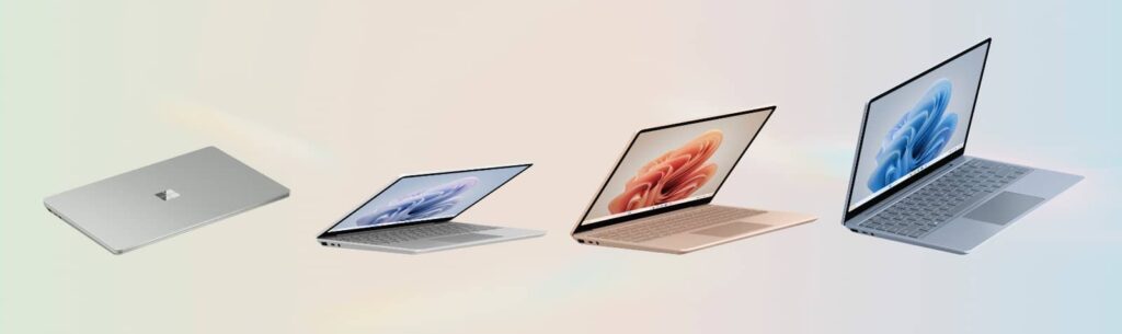 Below this is the Surface Laptop Go 3, a new generation of Microsoft’s less expensive take on the Surface Laptop, bringing a 12.4 inch touchscreen to the Surface Laptop package, an Intel Core i5 chip, up to 16GB RAM, 256GB storage which is technically removable, and a design made to be highly movable.