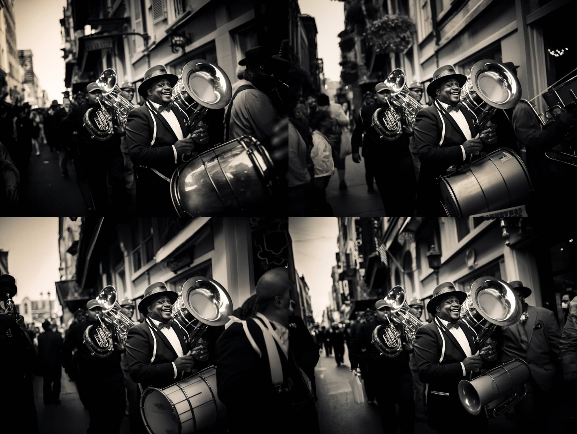 In testing Midjourney’s zooming creation, we’ve found that while you can technically perform lots of zooms, you may find other things get created inside of them that don’t match. Some of our zooms ended up creating brass instruments that simply don’t exist, looking like elongated pipes or even drums that more resembled kegs than instruments.