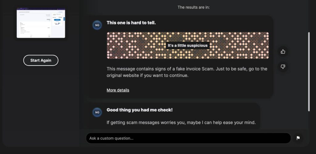 However, internet security providers could have a solution in the form of AI for good, with Norton including some machine learning as part of a tool designed to help you decipher whether a scam is just that — a scam.