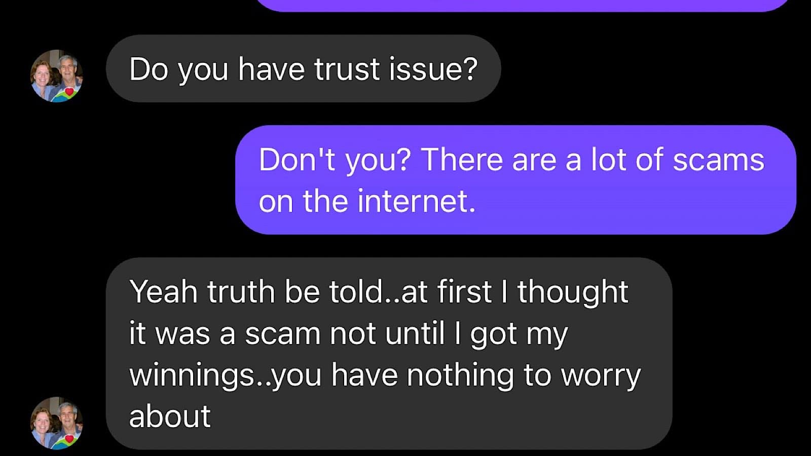 And if someone reaches out to you in the guise of someone else, ask them a question that only the real person would know, or mention a fact with the same principle.