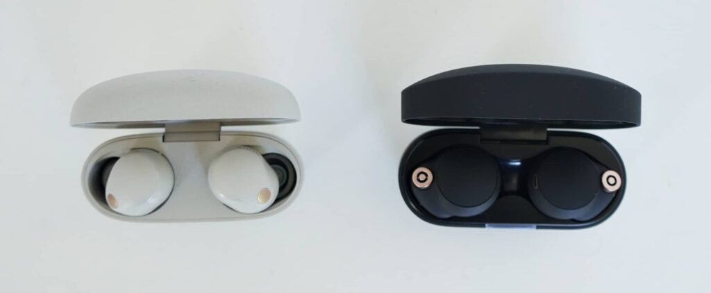 In the XM5, Sony has tightened up the design by making them a little smaller, something you can easily see when comparing the earbuds side by side. The size is notably different, while the shape and finish is distinct, as well, with a more elongated design and glossier materials.