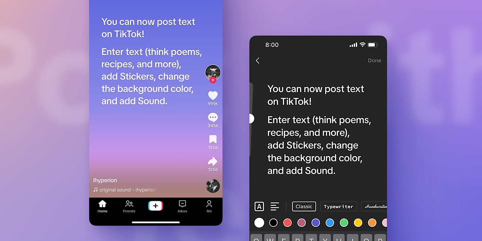 TikTok didn’t call these “TextToks”, but it did promise features will make your text on its platform, including adding sound, location, comments, stickers, tags and hashtags, background colours, and even supporting the “duet” feature it has available for videos.