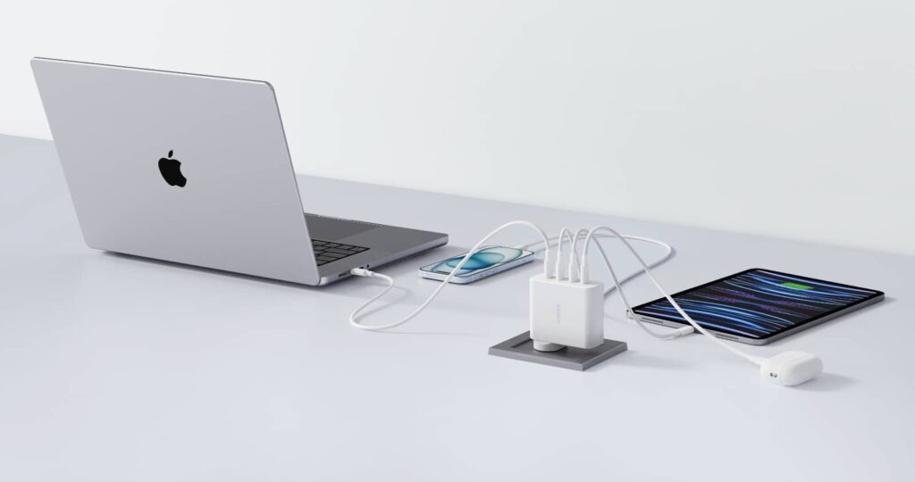 Making this happen is a technology that can run hotter in a smaller size. Gallium Nitride or “GaN” provides that capability, and we’ve seen it deliver larger amounts of power in smaller charge packs, so much that even Apple adopted the technology for its two-port optional MacBook Air charger.