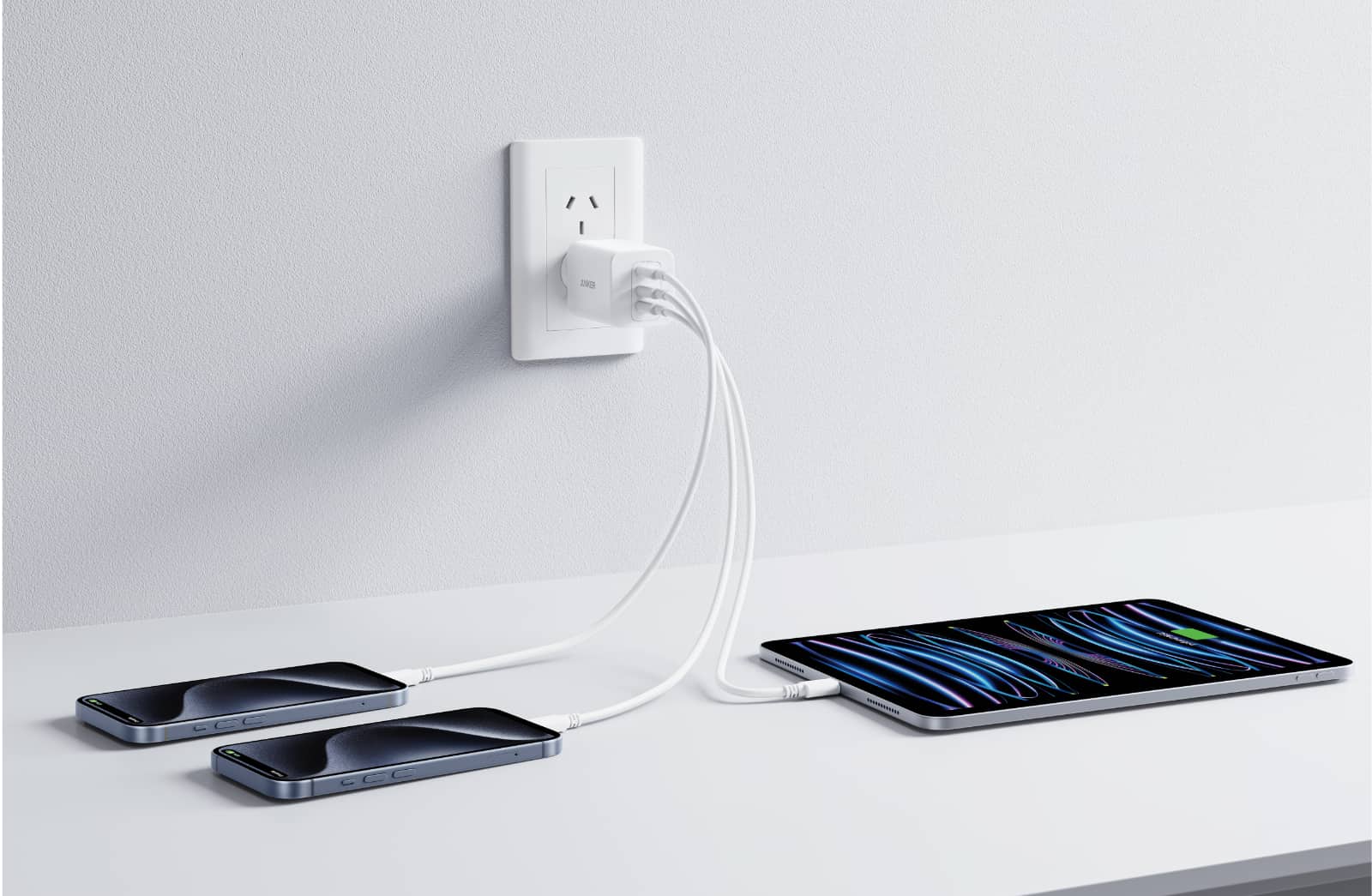The range consists of five options, with a compact single-port 30W charger, a two-port 50W, a three-port 70W, and two four-port options delivers either 150W or 240W, the last of which is more likely to be desk-bound rather than the sort of thing you carry with you.