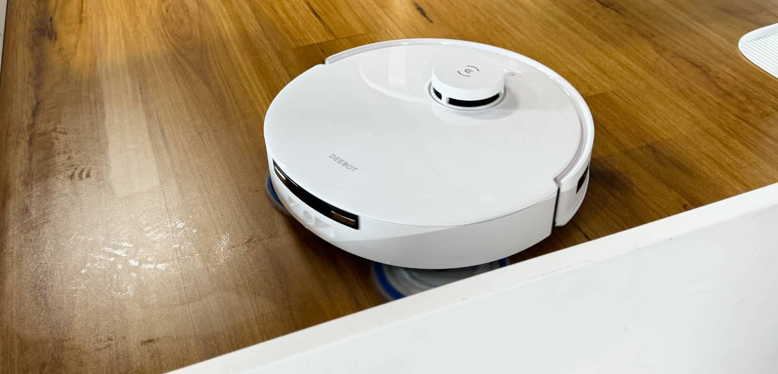The technology is something Ecovacs calls “TruEdge Adaptive Edge Mopping”, and is a combination on sensors, algorithms, and a mop extender arm that can be retracted at various amounts, allowing it to move in at different points so the robot can clean as close or as far as it needs to be to get in there.