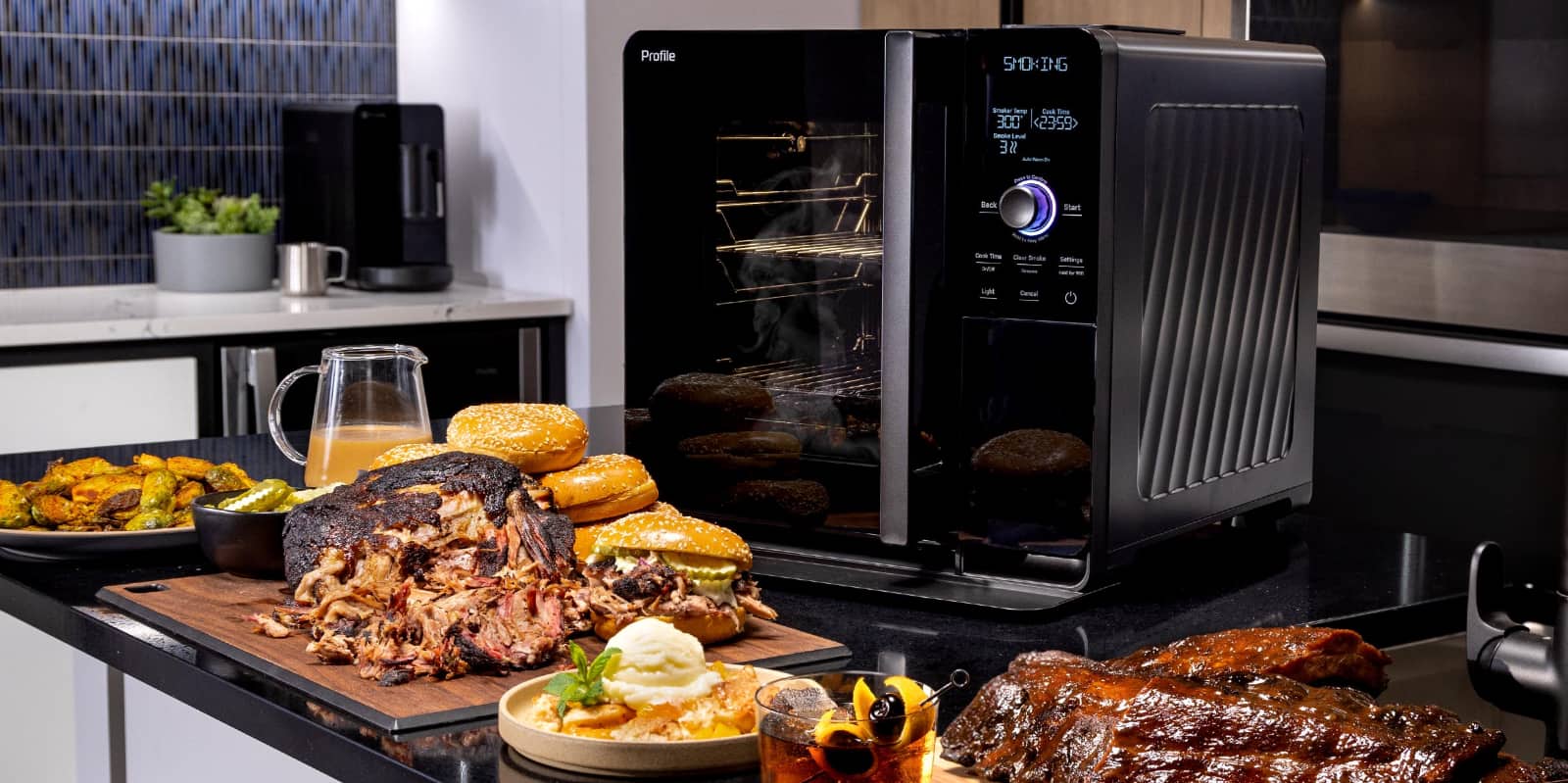 Looking a little like an elongated microwave of sorts, the GE Profile Smart Smoker apparently uses a smoking process from inside of a sealed box, allowing people to smoke indoors using wood pellets and preset food settings that you can set.