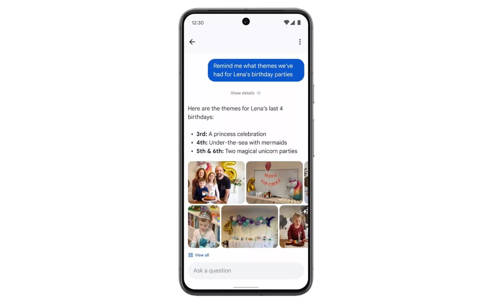 “Ask Photos” will essentially allow you to ask questions about your photo library, using the information in your library about people and places, and joining the dots from questions and queries.