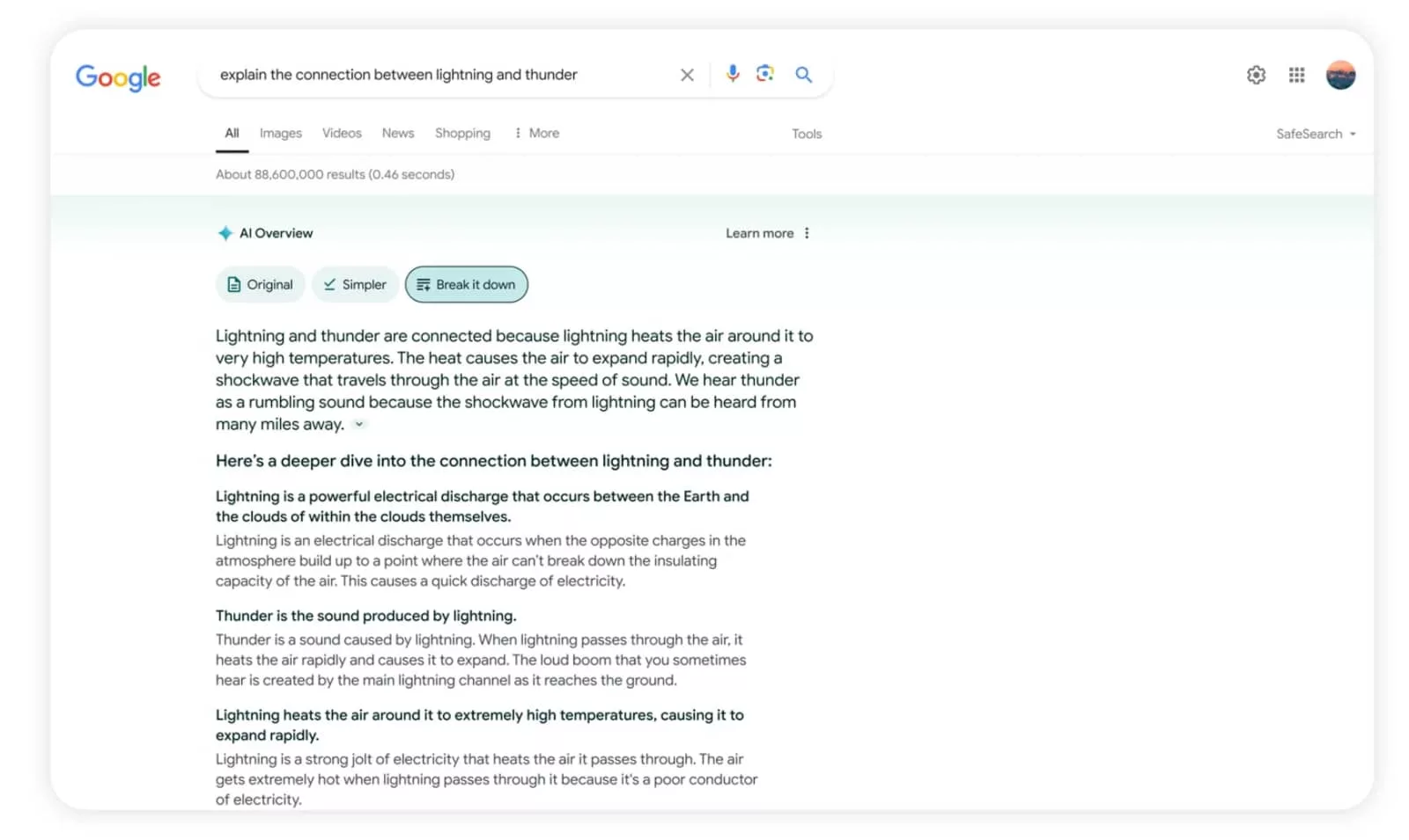 Using some of that data, and no doubt the data Google has learned by reading and comparing every webpage for almost three decades, Google Search will expand its use of AI by providing summaries of search from text and video searches.