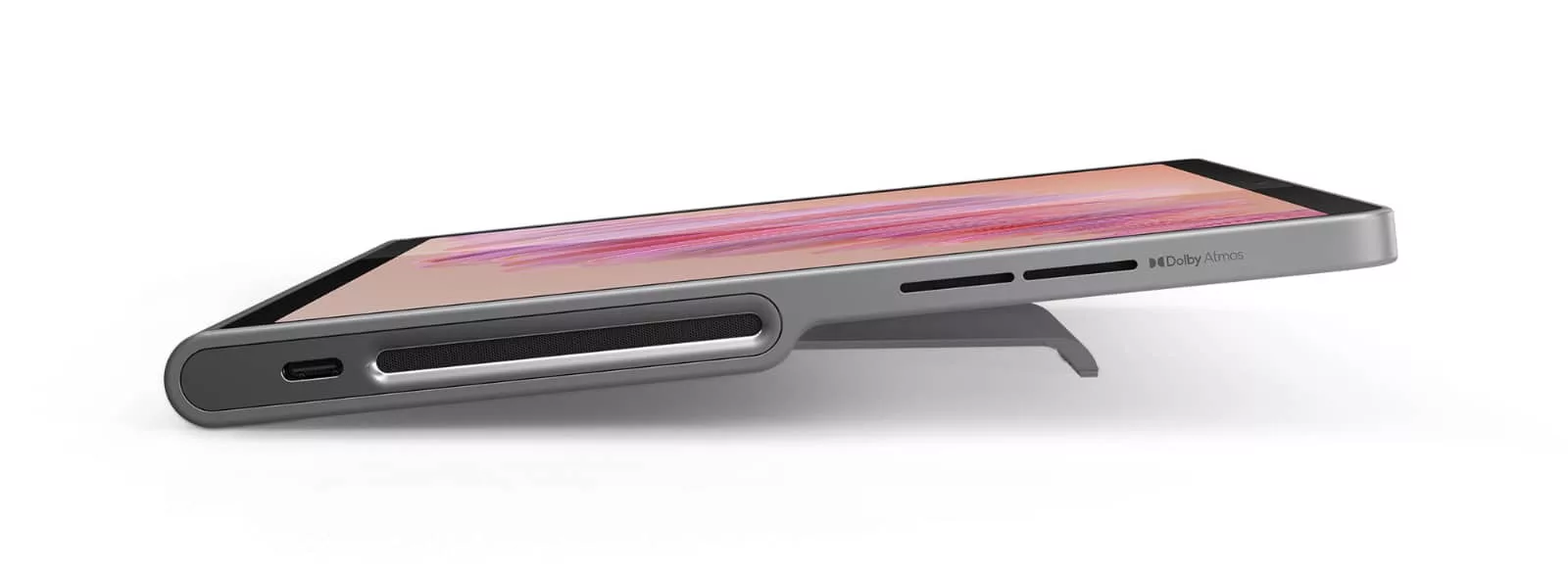 Yes, it’s still a screen with computer (more like phone) guts behind, supporting a MediaTek Helio G99 processor, 8GB RAM, and as much as 256GB storage with Android 14. However, Lenovo has changed the design slightly, thickening one side and including a kickstand, allowing the Tab Plus to stand up by itself.