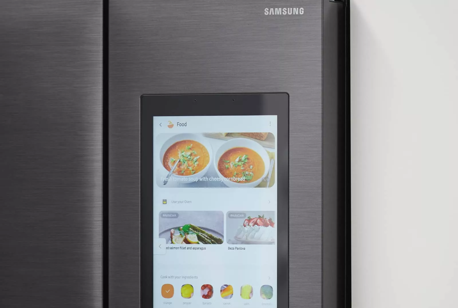 In the company’s latest Family Hub French Door refrigerator, there’s an internal camera trained to recognise up to 33 food items regularly put into and taken out of the fridge, using AI to identify when something is fresh, and even have people using the fridge type in an use-by date using the fridge’s 21.5 inch screen.