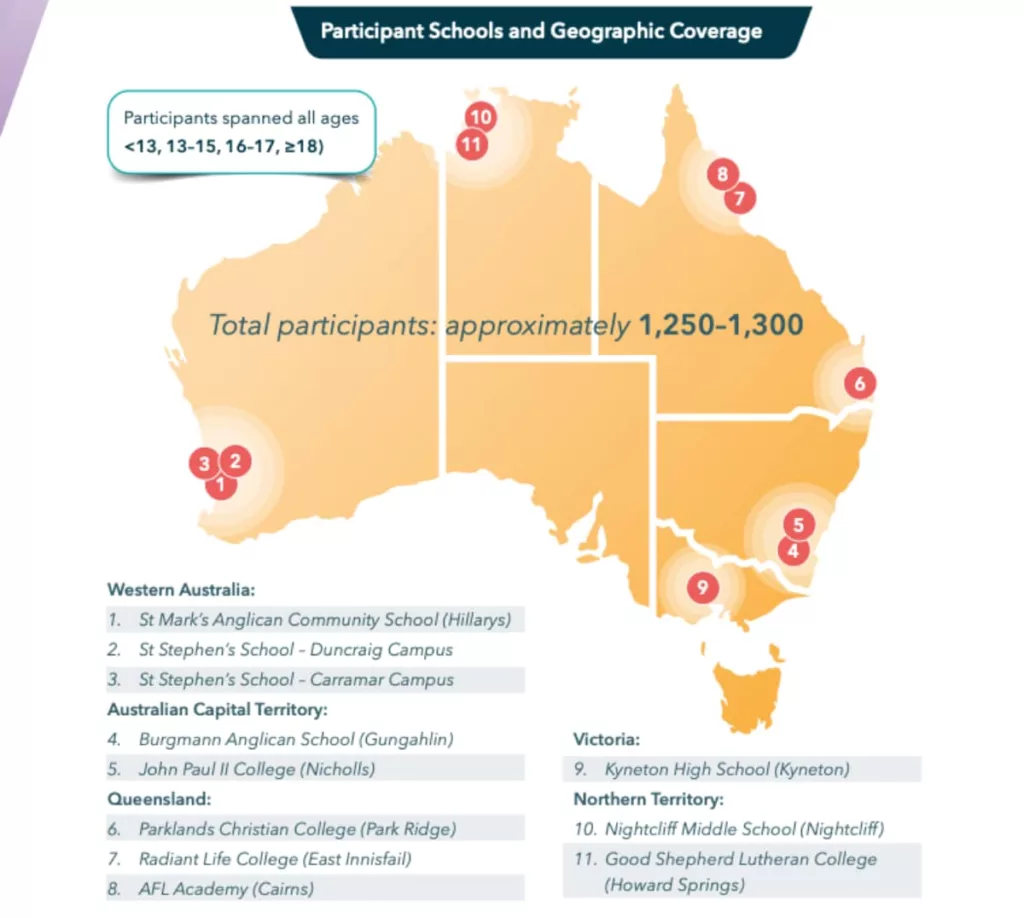 Specifically, the participant schools covered most of the country’s states, but not the two biggest cities in the country: Sydney and Melbourne. Neither city saw a school, and out of the two states each is from, only Victoria nabbed a testing school.