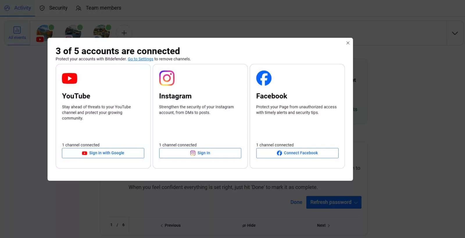 Bitdefender’s options also include a team protection option, which means more than one person on a social account — such as a designer or video editor — can have the service extended to cover them, as well.