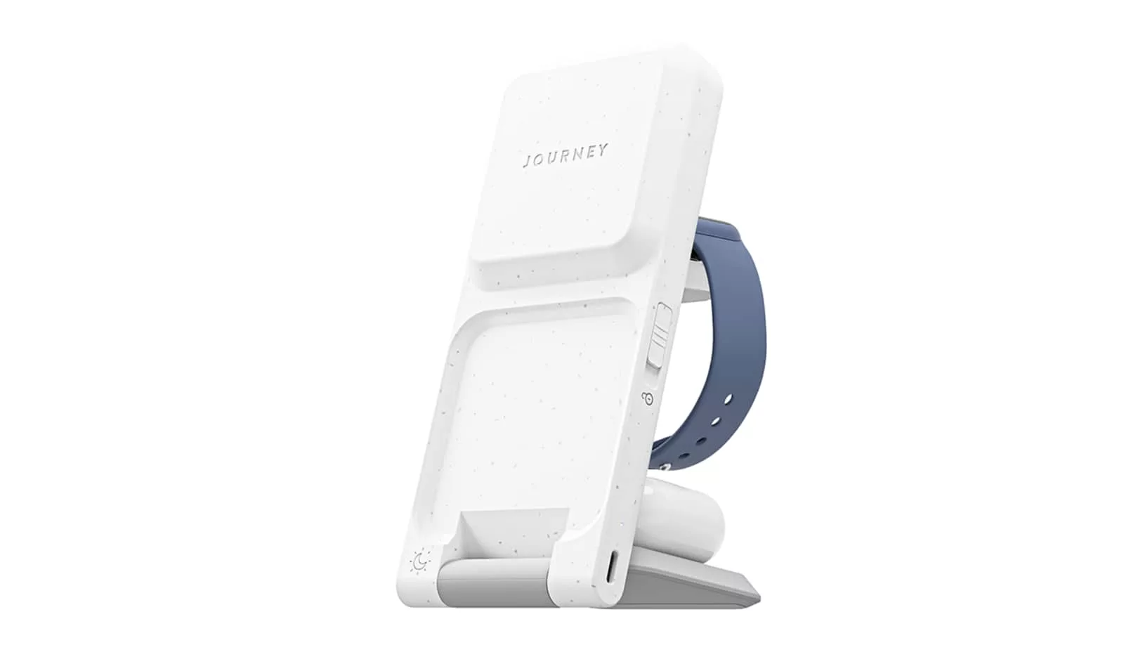 However, the Journey Aria includes a hinged design that turns the wireless earphone charging section into a stand, keeps the top of the charger for wirelessly charging one of the new Qi2 enabled devices or even MagSafe-friendly phone, and pops out an Apple Watch charging nub at the back.