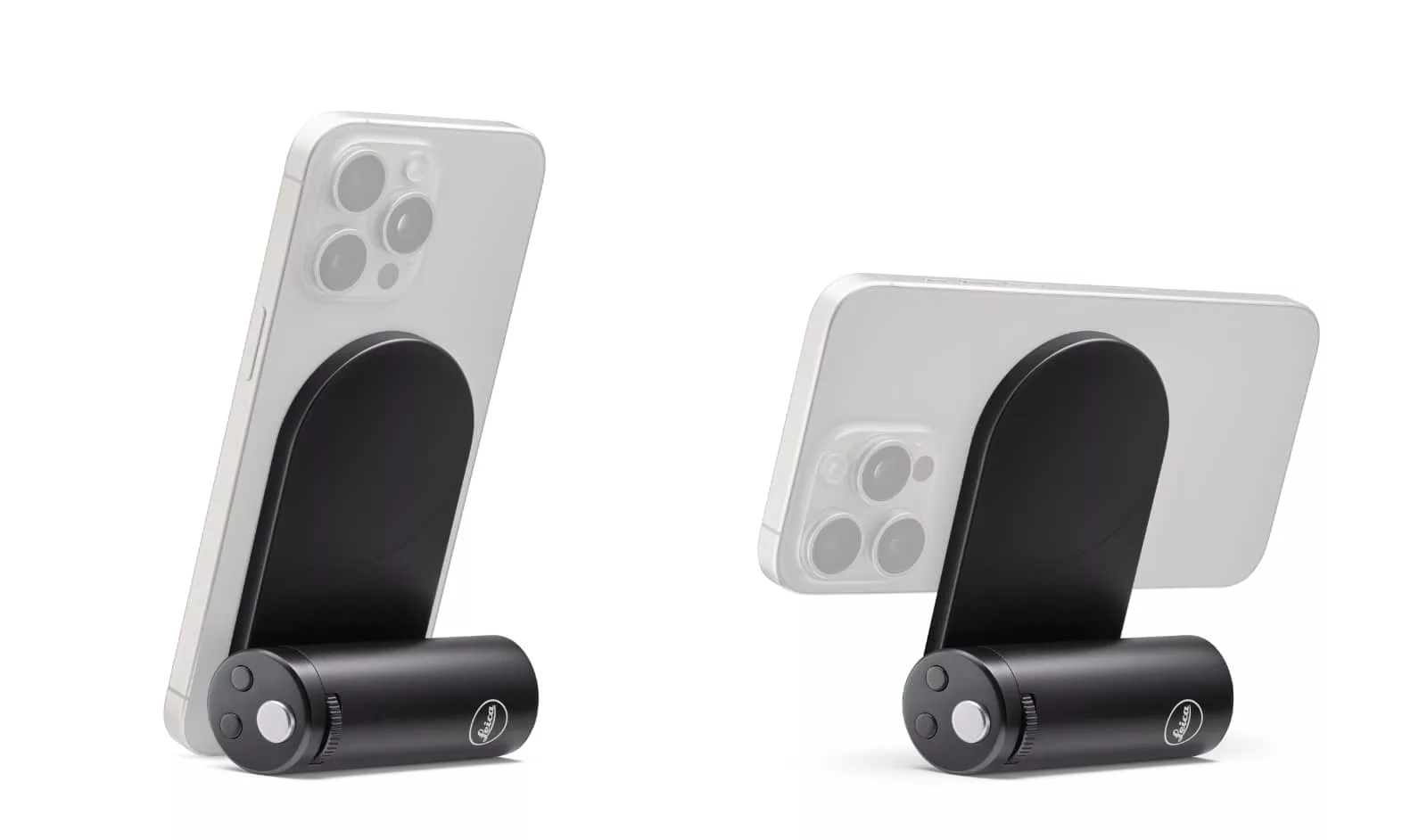 The design almost suggests that Leica sees the specialised grip also working as a bit of a stand of sorts, complete with a tripod thread mount on the bottom and support for current and future MagSafe iPhones, too.