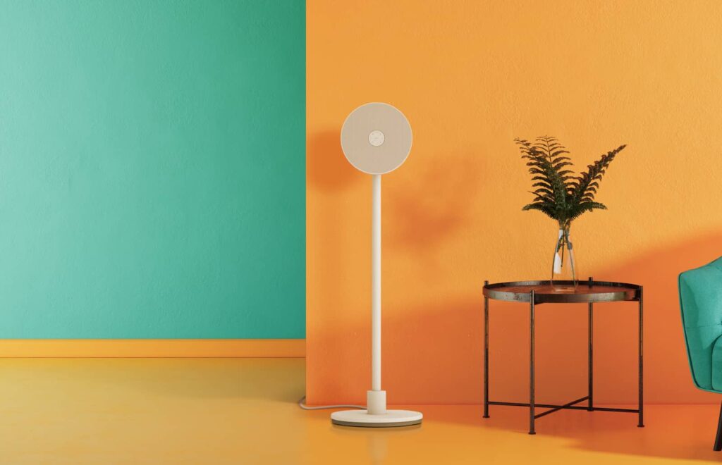 All of this sits on a stand and looks rather like a conventional fan, with the projector able to be repositioned to work as a projection system, or sitting upright as a nine-colour LED lamp. Meanwhile, the speakers also work as a sound system when the projector isn’t necessarily running, either.