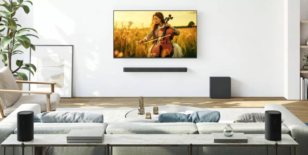 Meanwhile a new generation of Sony’s Acoustic Surface Audio from its older OLED TVs hides the sound behind the screen, using the display as part of the speaker system.