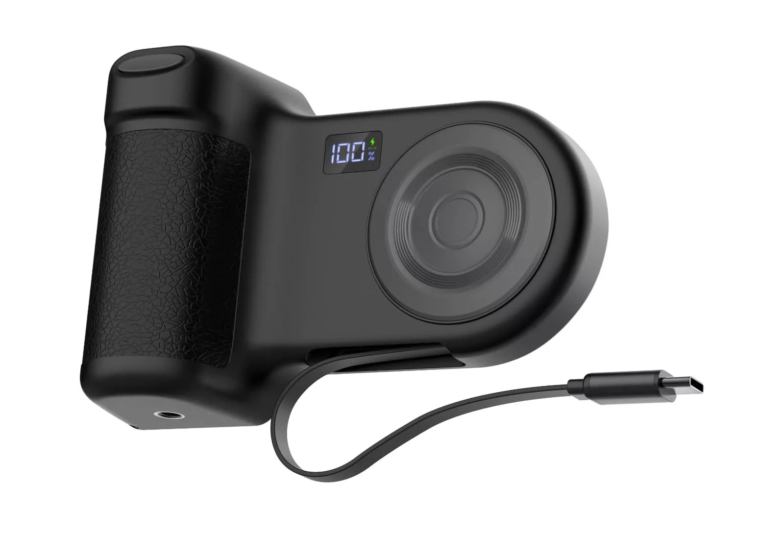 The Power Grip also has a retractable USB-C cable at the bottom for charging other devices, and there’s a USB-C port up top, so you could easily recharge three devices including the iPhone, and stand it up doing so.