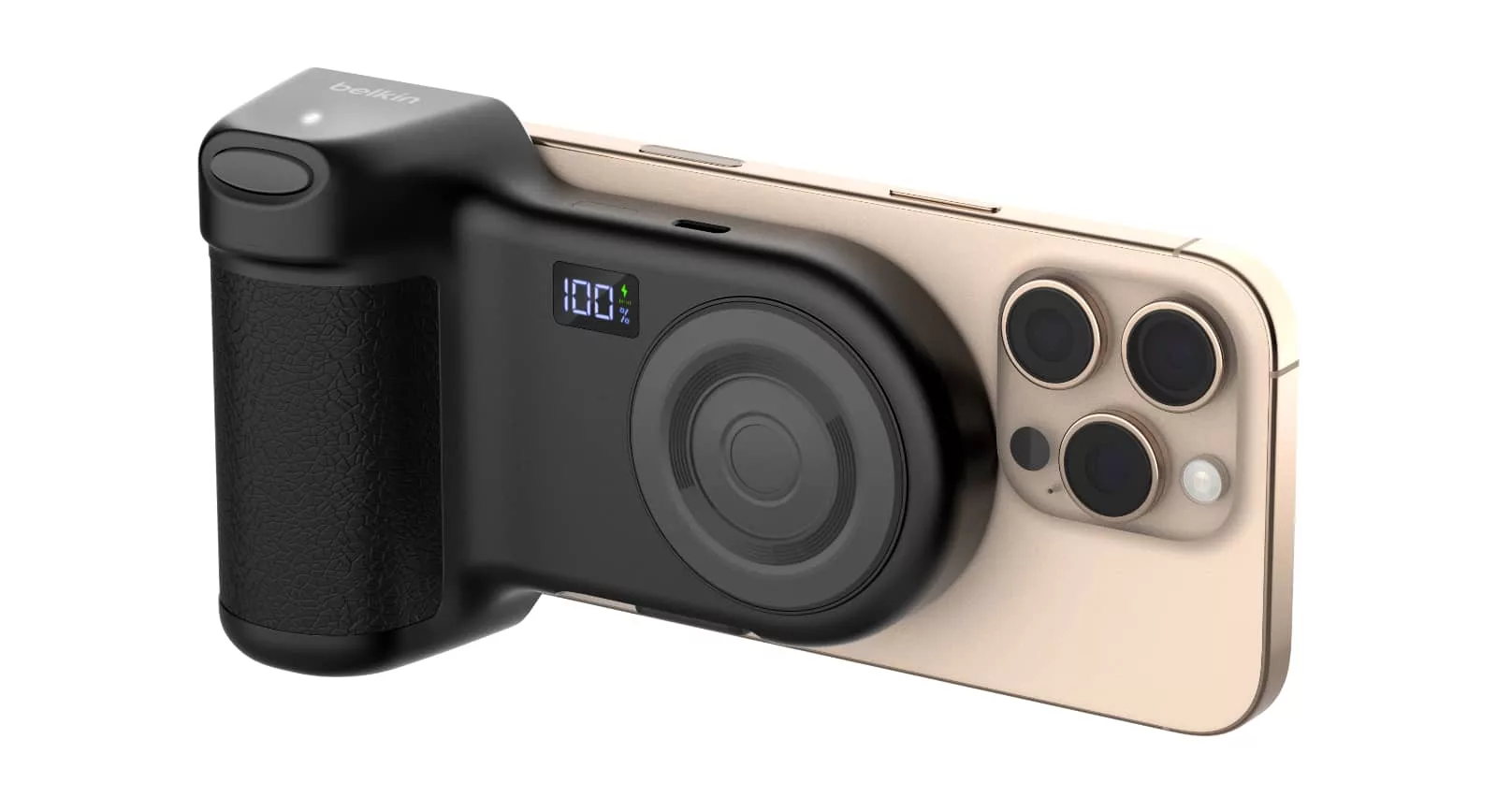 Belkin’s additions to that this year come in the form of a clever power bank shaped like a camera grip that uses the circular magnets to hold to the back of the phone, charge it, and even use a button on the camera grip as a Bluetooth trigger for the phone.