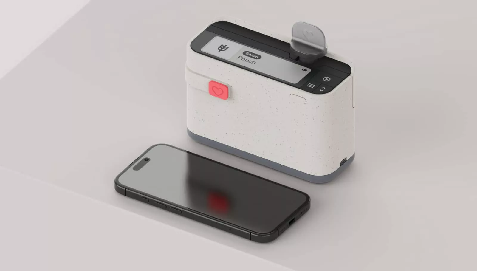 The system uses a single-use pouch for food samples, apparently processing protein extraction, detection, and analysis to provide details on whether it has allergens. Each pouch would be $10 USD individually or available through a subscription plan, with the device purchased separately.