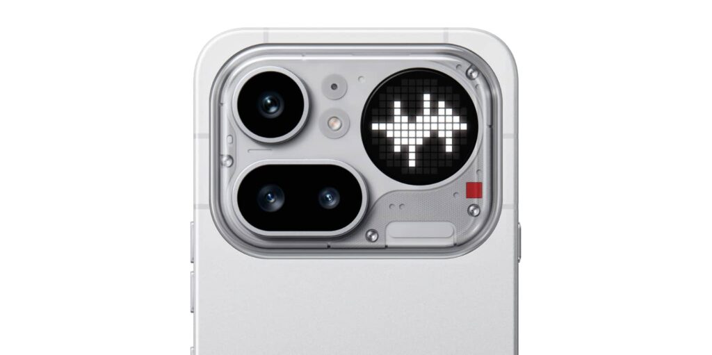 Nothing’s whole extra feature that is the glyph is also back on each phone, albeit in different ways. On the Phone 4a Pro, you’ll find a similar Glyph Matrix mini-LED panel to the Phone (3), while the Phone 4a standard gets a tall bar made of mini-LEDs to light up various things.