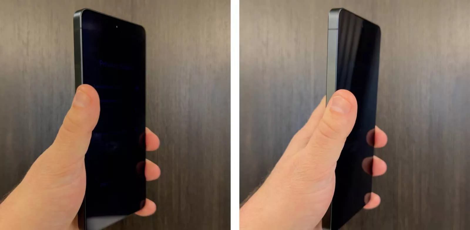 To do this, Samsung is actually turning off a line of pixels on its AMOLED display, essentially closing up the field of view slightly. The look is reminiscent of older screens that can’t be viewed from the sides, giving you the feeling of “privacy”.