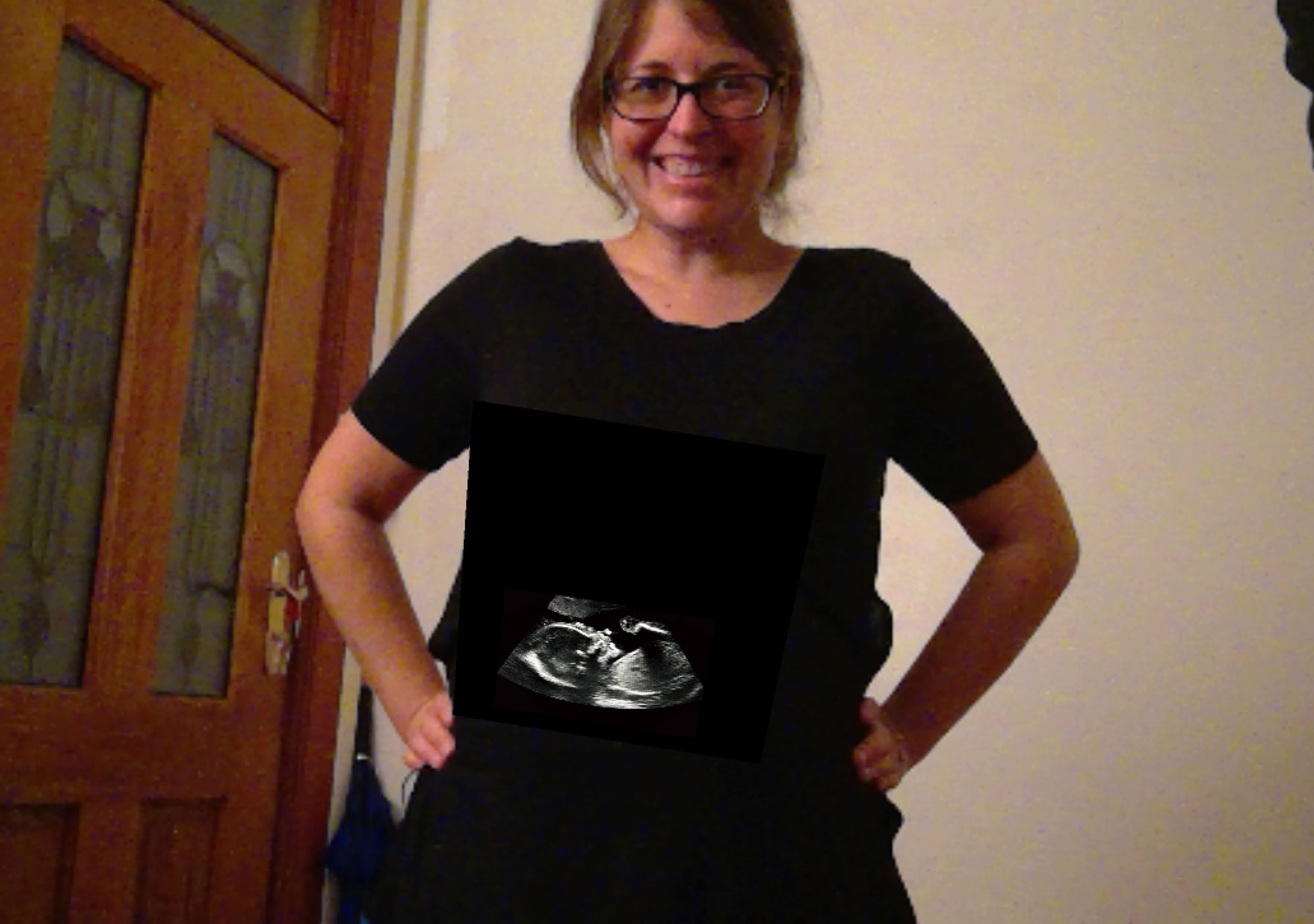 I turned that quickly into a movie, capturing a small movie of the moving baby and projecting that in its place, basically giving the soon-to-be-mum even more to feel connected to: a selfie with a moving image.