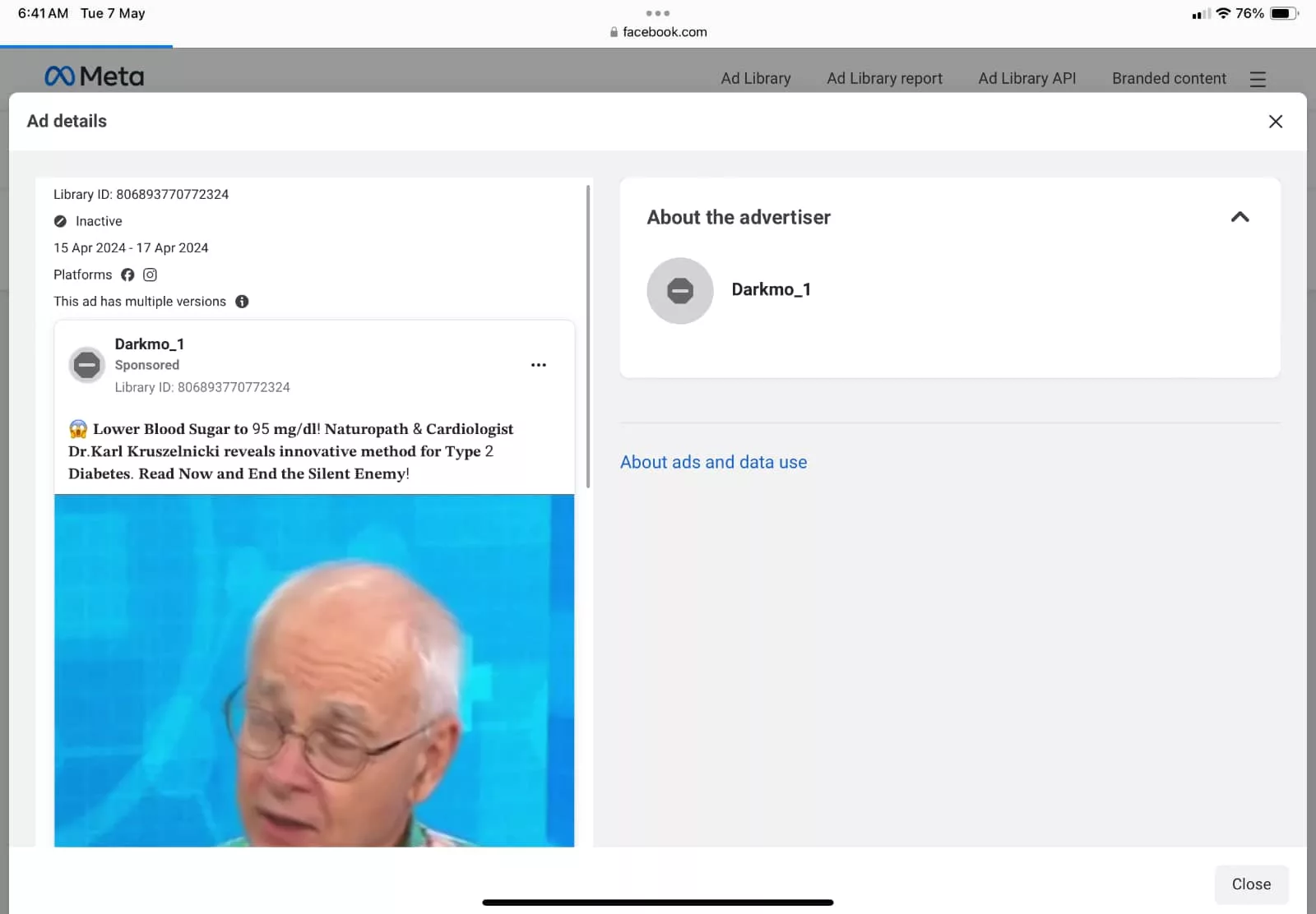 As it is, Dr. Karl’s team files complaints and takedown requests weekly, sometimes to the tune of 100 complaints a day to have illegitimate ads removed. The ads are deliberately deceptive and often contain copyrighted material, repurposing faces and images without permission, and yet ad platforms continue putting them online and running them.