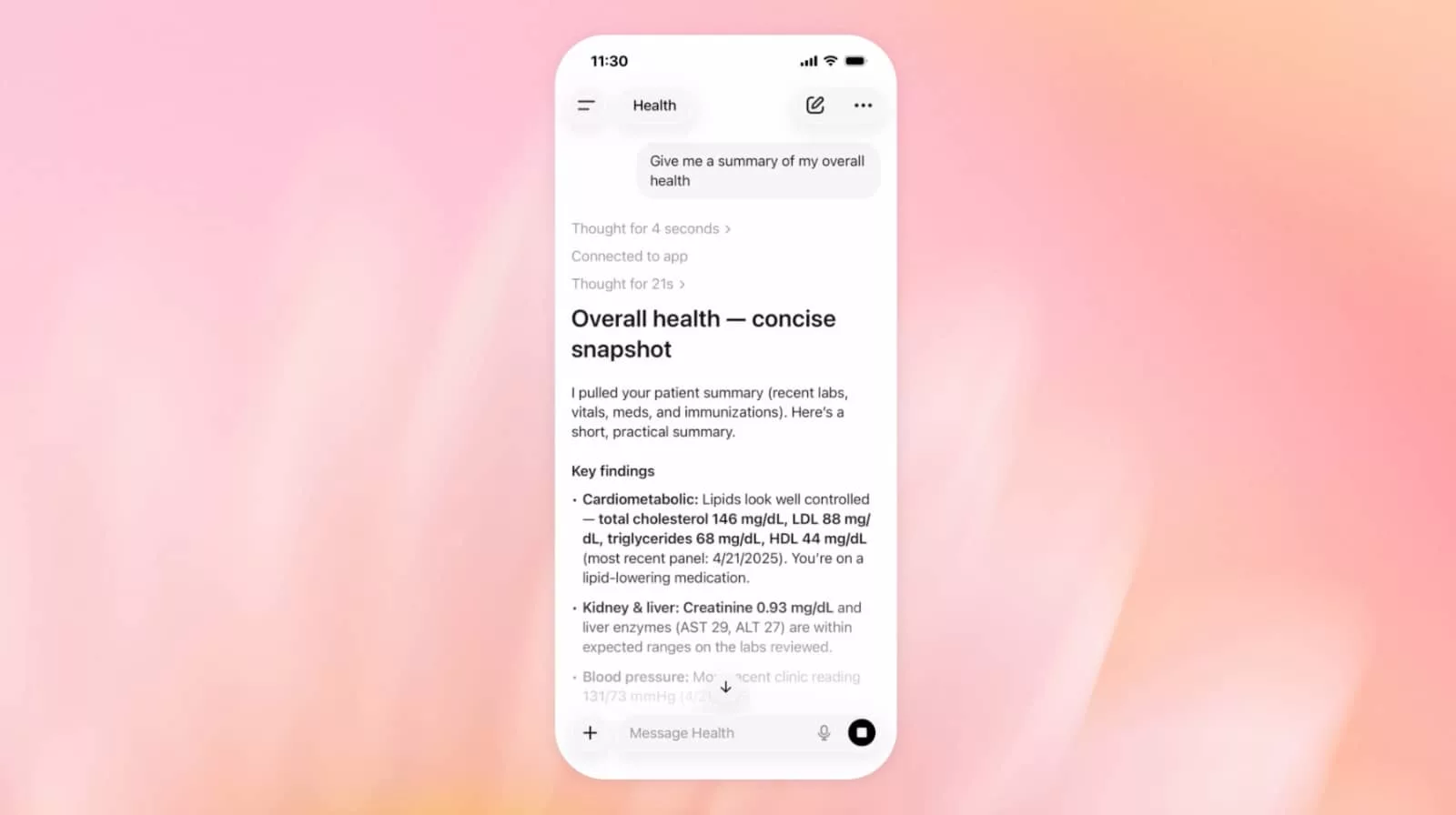 “Instead, it helps you navigate everyday questions and understand patterns over time—not just moments of illness—so you can feel more informed and prepared for important medical conversations.”