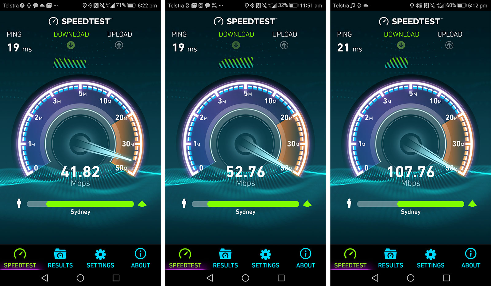 Even the 4G speeds check out, and while Category 6 connections aren’t the best around, there’s literally nothing to complain about with a 300Mbps maximum downlink here, witho ur tests revealing speeds between 40 and 110 in Sydney’s CBD. If you manage to get more, bonus.