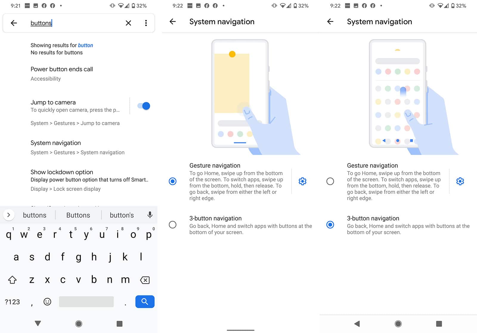 Don’t worry, you’re not alone, and if you need to, you can search for “buttons” in the system settings to get the three button navigation back. Easy.