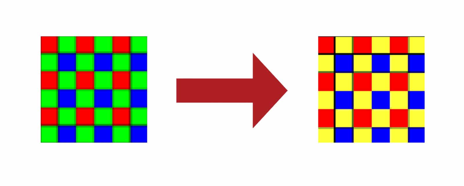 At least one company has dabbled in using yellow for part of the spectrum, with Sharp using yellow pixels on its TVs at one point, included to improve picture quality.