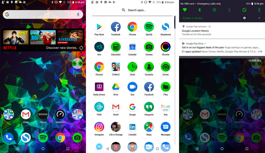 In an interesting twist, Razer’s smartphone comes with a launcher that is more customisable than most, arriving with the Nova Launcher out of the box, preconfigured with the Razer green you might expect from the brand.