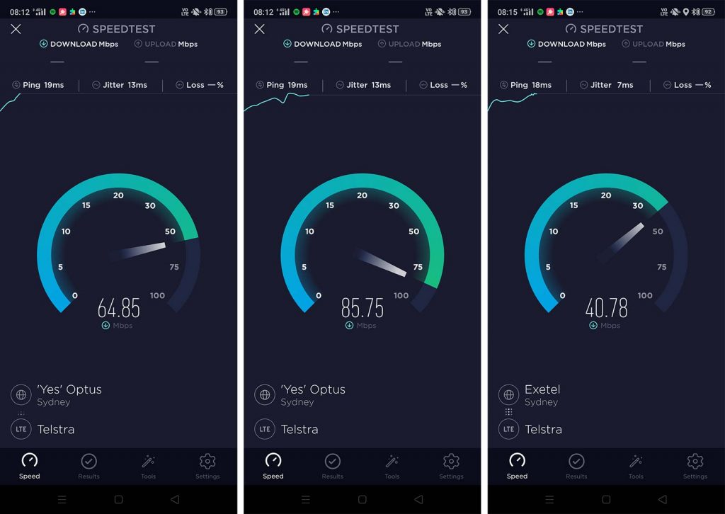 Mobile performance on the side of the 4G modem is also capable. While Realme hasn’t said what category the modem fits into, testing the Realme XT on the Telstra 4GX network in Sydney’s CBD, we found speeds ranging from 40 to 90Mbps, suggesting either a Category 4 (150Mbps max) or Category 6 (300Mbps) modem. While neither will set the world on fire, both are more than acceptable for a 4G phone in today’s world.