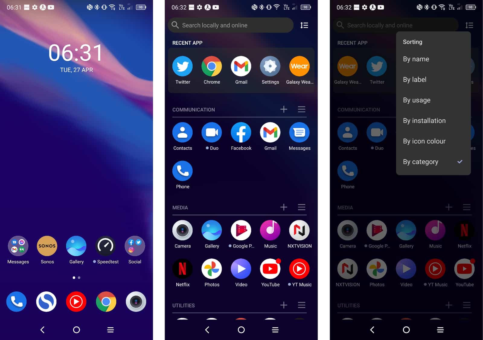 Like any other Android experience, you’ll find widgetised home screens with an app drawer, though the app drawer is more categorised than we’re used to, setting up for categories based on app type, install date, and so on.