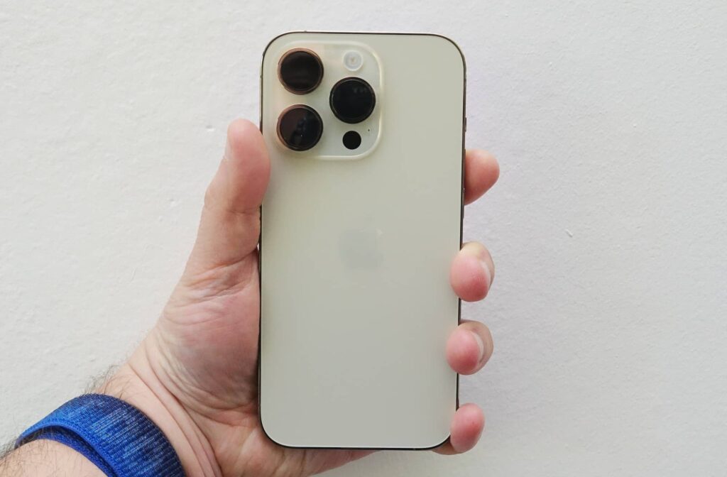 With a design that evolves the already excellent designs of the iPhone 12 Pro and iPhone 13 Pro before it, the iPhone 14 Pro borrows the stainless steel frame of the previous models, the strengthened glass on the front and back, and the three cameras in a slightly raised configuration.