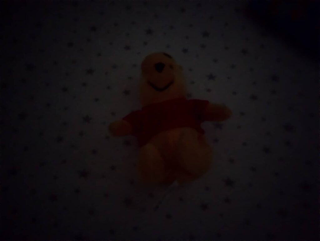 We captured a small plush of Winnie the Pooh without a lot of light, and regardless of whether night mode's stacking is switched on or not, you're not going to see Winnie in a good light, or any at all.